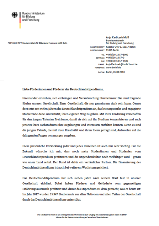 Aus diesem Grund erhielten wir ein Schreiben der Bundesministerin für Bildung und Forschung Anja Karliczek, in welchem sie die gemeinsamen Erfolge würdigt. Wir fühlen uns und unsere verstorbene Clubschwester durch dieses Schreiben sehr geehrt und möchten es aus diesem Grund hier veröffentlichen.
